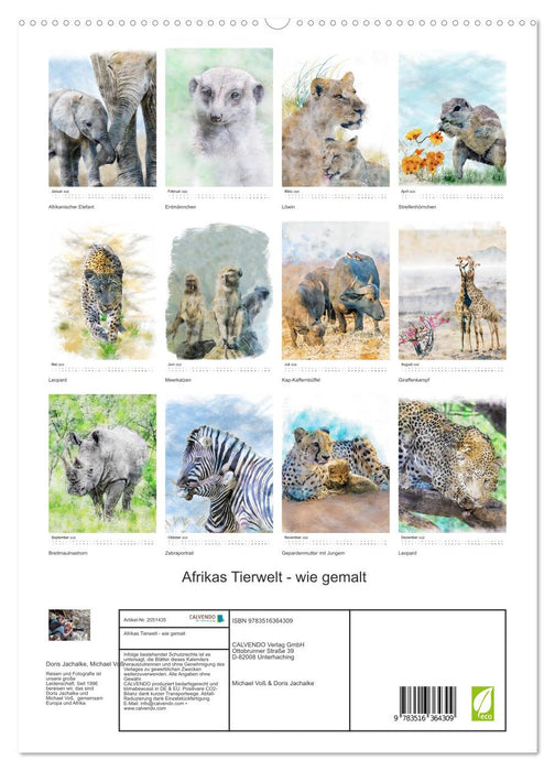 Afrikas Tierwelt - wie gemalt (CALVENDO Premium Wandkalender 2026)