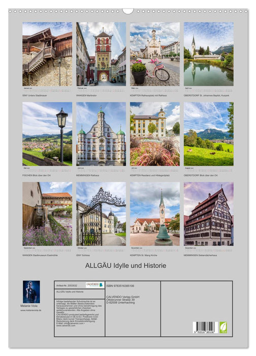 Lassen Sie sich von sechs Städten in der beliebten Urlaubsregion über das Jahr begleiten. Der Kalender führt durch die Allgäuer Orte Kempten, Isny, Fischen, Oberstdorf, Wangen und dem als Tor zum Allgäu bekannten Memmingen. Ein Spaziergang durch verwinkelte Gassen der Altstädte führt vorbei an historischen Bauten und imposanten Plätzen. Bei Wanderungen sind malerische Landschaften zu bewundern.