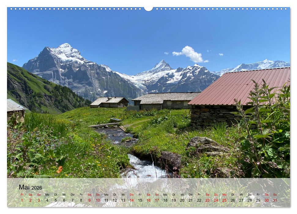 Mai: Bergdorf mit Blick auf Eiger, Mönch & Jungfrau