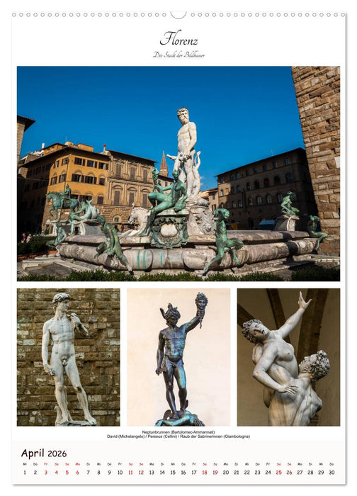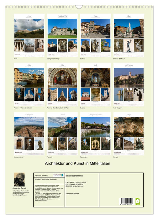 Es gibt viele Möglichkeiten sich für Mittelitalien zu begeistern. Sei es die unvergleichliche Landschaft der Toscana oder der hl. Franz von Assisi in Umbrien. An den vielen hervorragenden und außergewöhnlichen Künstlern dieser Region kommt man jedenfalls nicht vorbei. Von Perugino bis Botticelli, von Leonardo da Vinci bis Michelangelo, von Sagallo bis Brunelleschi - ihre Kunstwerke sind überall präsent und ein paar von ihnen zeigt uns dieser wunderbare Bildkalender.
