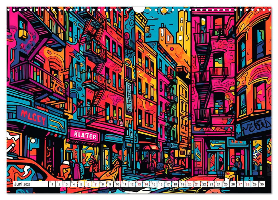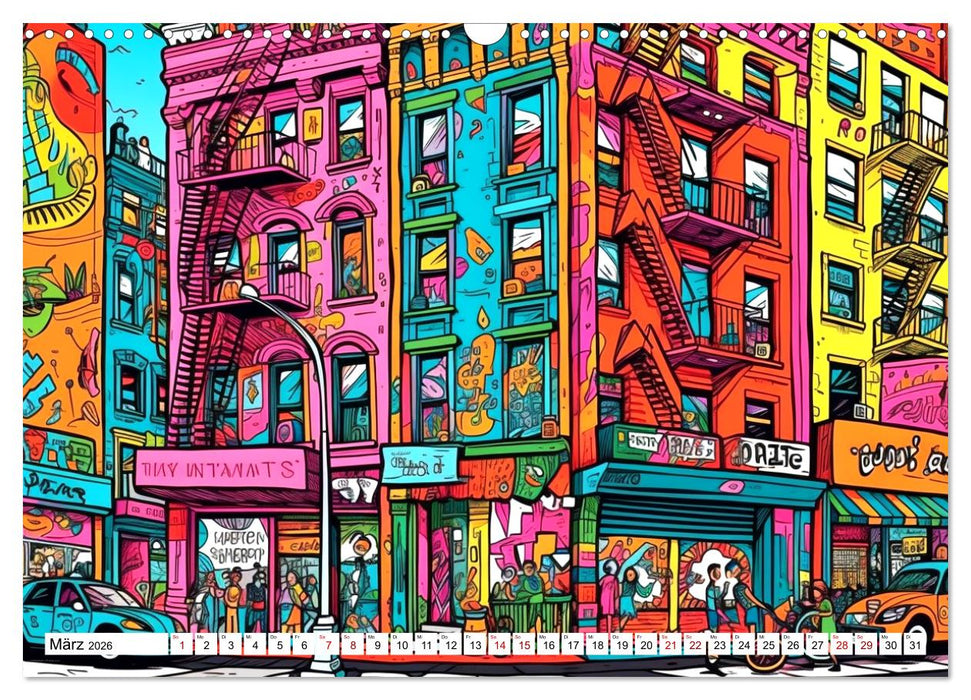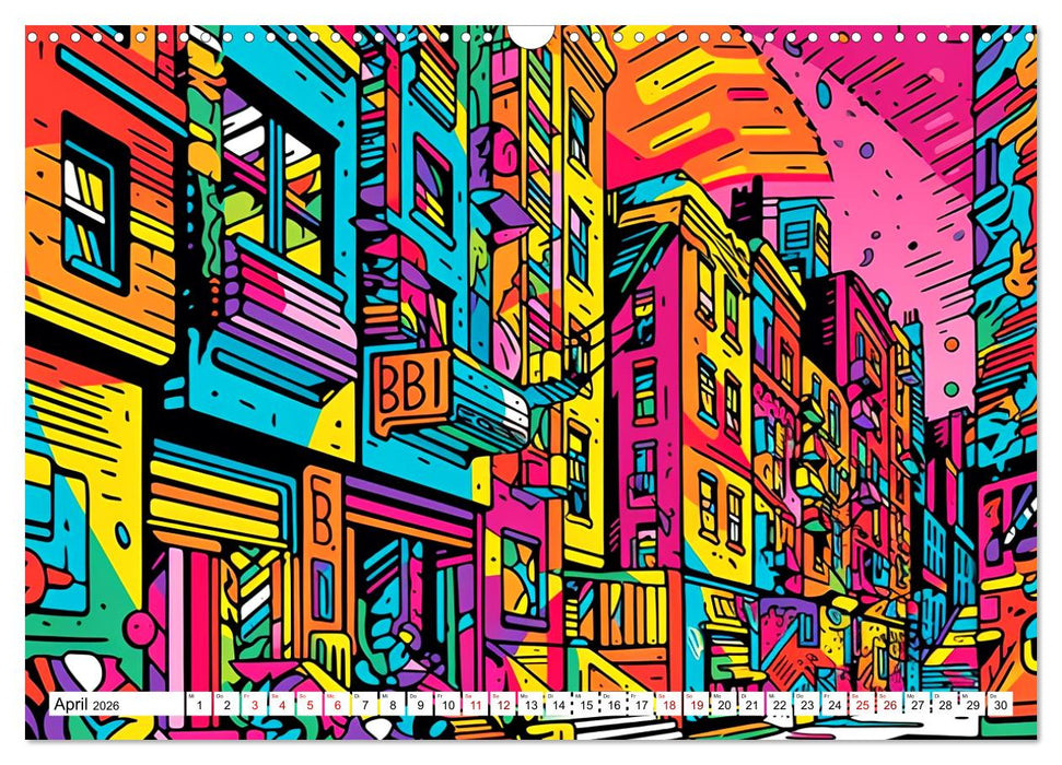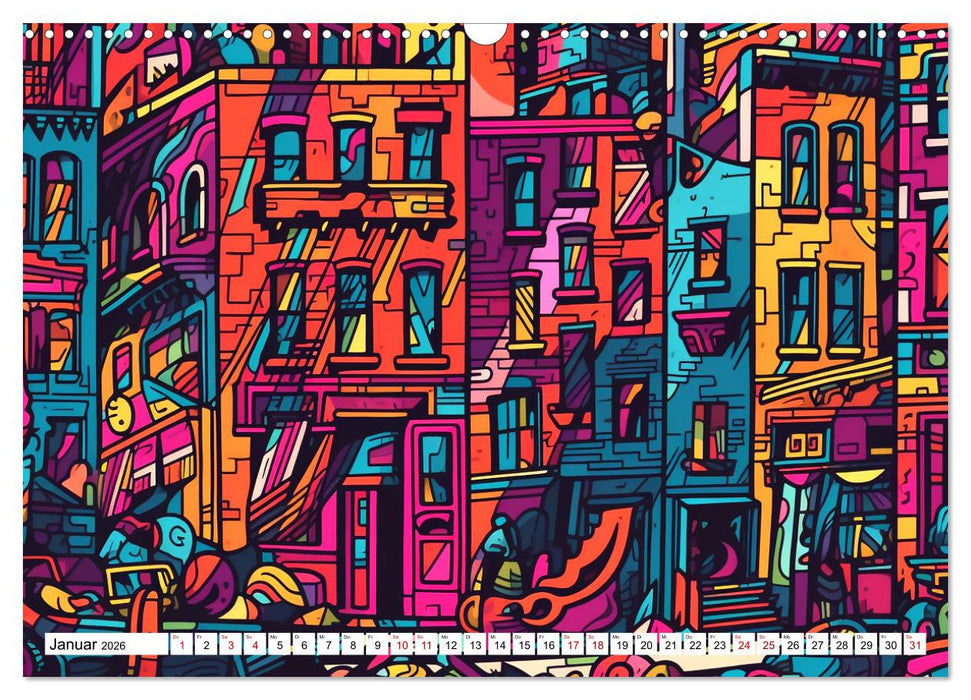 Die zwölf Bilder in diesem Wandkalender zeigen Städte auf eine neue und inspirierende Art und Weise. Jedes Bild ist einzigartig und wird Sie jeden Monat aufs Neue begeistern. Bestellen Sie noch heute Ihren eigenen Wandkalender mit bunten Städten im Rizzo Doodle Style und bringen Sie eine kreative, moderne Note in Ihr Zuhause oder Büro!
