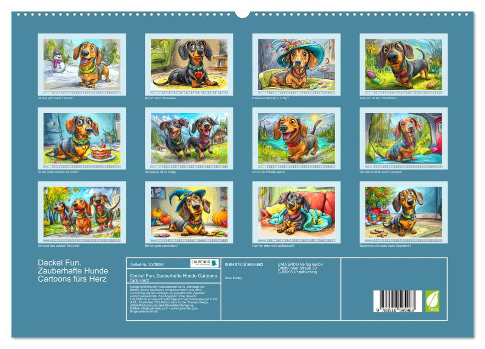 Dieser Dackel Kalender steckt voller Charme und Witz auf kurzen Beinchen. Jeder Monat wurde mit der Hilfe von KI erstellt und zeigt den liebenswerten Dackel in einer humorvollen Alltagsszene – mal als lustiger Wanderer, mal beim Campen. Die bunten Illustrationen bringen Groß und Klein zum Schmunzeln. Ein Muss für alle Dackel-Fans und Freunde des Hundehumors!