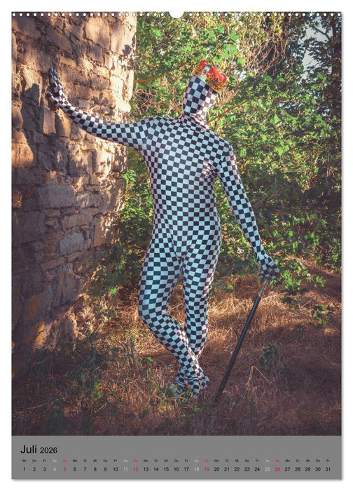 Der Ganzkörperanzug istaus einem dünnen Stoff der auch Kopf und Hände umfasst. (Monatskalender, 14 Seiten)
