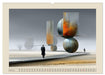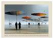 Am Strand erwacht die Fantasie: Riesige Skulpturen, schwebende Spiegel, glänzende Kugeln und bunte Schirme verschmelzen mit Licht, Sand und Himmel zu einer Welt jenseits der Realität. Der Boden spiegelt wie Wasser, der Himmel leuchtet in traumhaften Farben. Die Bildmotive wurden mithilfe von KI erschaffen. Ein Kalender, der staunen lässt – verspielt, rätselhaft, berührend.