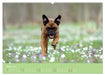 März: Boxer rennt im Wald durch Frühlingsblumen