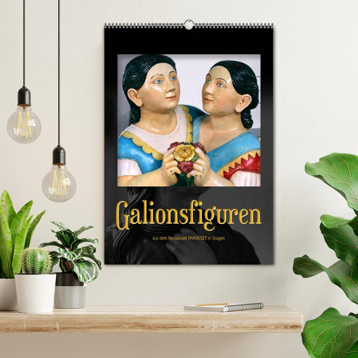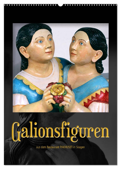 Galionsfiguren sind aus Holz geschnitzte Figuren, die auf Segelschiffen unter dem Bugspriet angebracht sind und – wenn man den Legenden der Seeleute glauben darf – das Schiff symbolisieren, aber auch vor Unglück schützen sollen. Die in diesem Kalender enthaltenen Figuren stammen aus der privaten Sammlung des Fischrestaurants "Pakhuset" im Hafen von Skagen/Dänemark, die ich mit Erlaubnis des Restaurantbesitzers fotografieren durfte. Herzlichen Dank dafür.