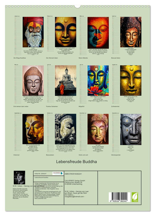 Kleine Schritte sind das Geheimnis des Erfolges. So auch beim Glück sagt Buddha. Sie, liebe Käufer, sind der Grund warum ich diesen Kalender entwickelt habe. Ich wünsche Ihnen von Herzen alles Gute, viel Freude mit diesem Kalender/Planer und werden Sie glücklich wie ein Buddha. Namaste… Ihr W.W. Voßen Herzog von Laar am Rhein