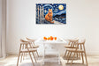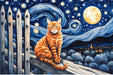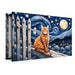 Premium Textil-Leinwand Aquarell Katze unterm Nachthimmel