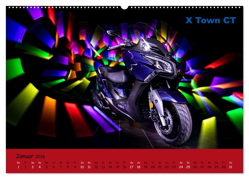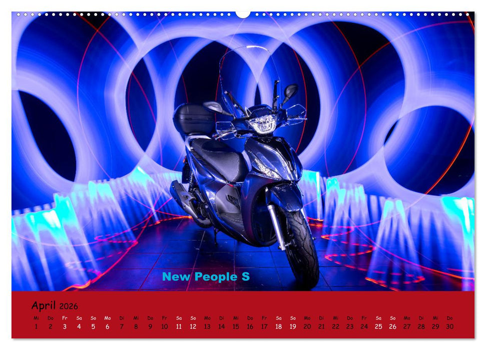Motorroller im Zusammenspiel mit Lichtmalerei. (Monatskalender, 14 Seiten)