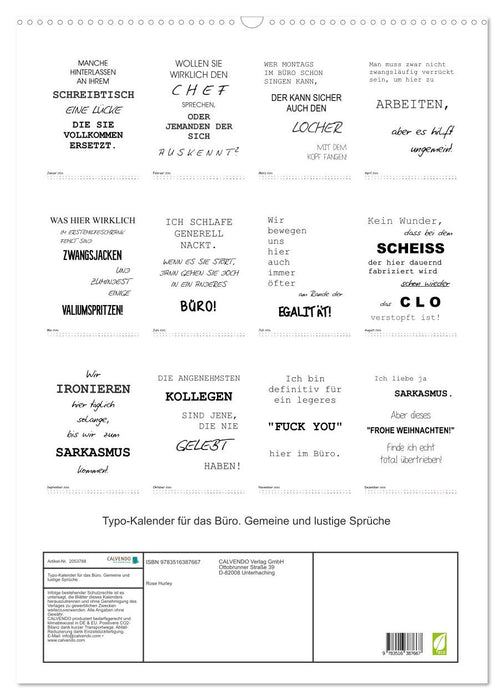 Typo-Kalender für das Büro. Gemeine und lustige Sprüche (CALVENDO Wandkalender 2026)
