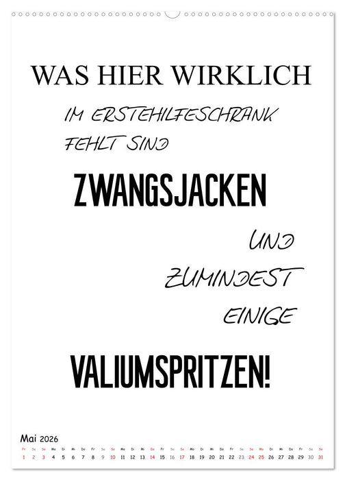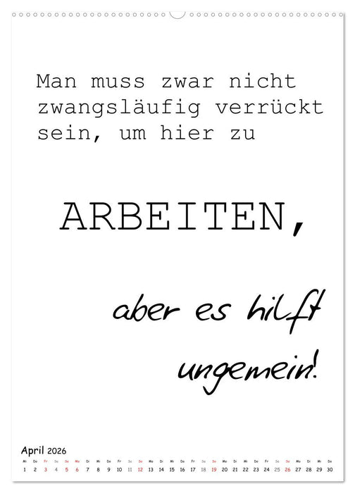 Lustige Sprüche für das Büro sind Kult! Sarkastisch, frech, ironisch, sehr originell und typographisch cool gestaltet. Jeder Monat ist schlicht schwarz-weiss gehalten und ein echter Hingucker der für gute Laune und jede Menge Schmunzeln sorgt.