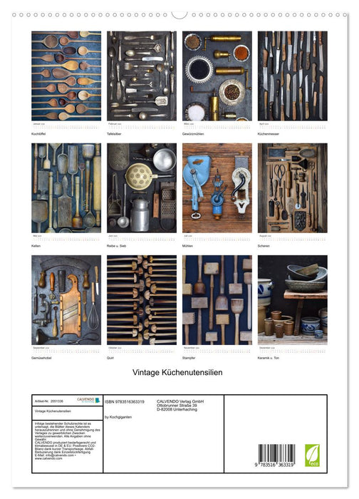 Der besondere Lifestyle- Kalender im Vintage- Look für jede Küche. Eine Sammlung antiker Küchengeräte und Küchenutensilien zeitlos in Szene gesetzt.