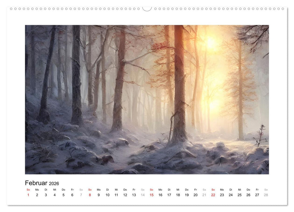 Im Stil bekannter Maler der Romantik wurden diese zauberhaften Gemälde mithilfe von KI erschaffen. Genießen Sie Monat für Monat ein verträumtes Waldbild.