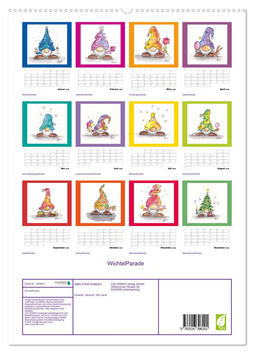 Eine Auswahl von handaquarellierten Wichteln begleitet Sie Monat für Monat durchs ganze Jahr.