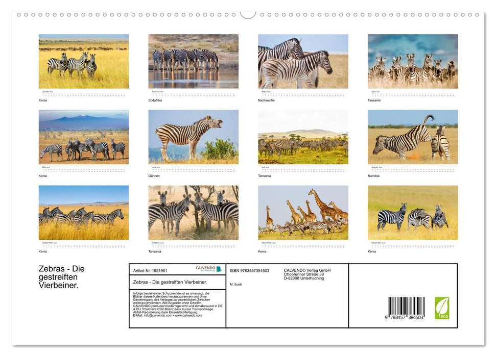 Erlebe jeden Monat ein neues Abenteuer mit unserem Zebra-Kalender! Die wunderschönen Fotografien von Zebras in ihrer natürlichen Umgebung werden Dich begeistern. Jeder Monat bietet ein einzigartiges Bild. Der Kalender ist perfekt für Naturliebhaber und alle, die eine schöne und praktische Dekoration suchen. Bestelle jetzt Deinen Zebra-Kalender und erlebe die Wildnis jeden Tag aufs Neue!