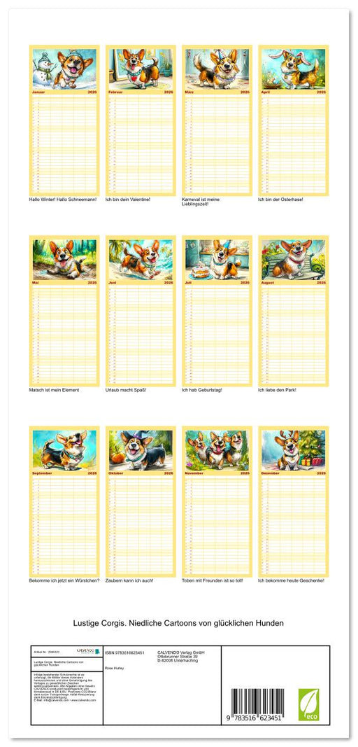 View full detailsLustige Corgis. Niedliche Cartoons von glücklichen Hunden (CALVENDO Familienplaner 2026)