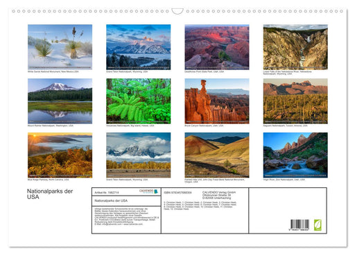 Erleben Sie die faszinierenden Landschaften der Nationalparks der USA mit unserem Bildkalender! (Monatskalender, 14 Seiten) Neben den großen Metro...