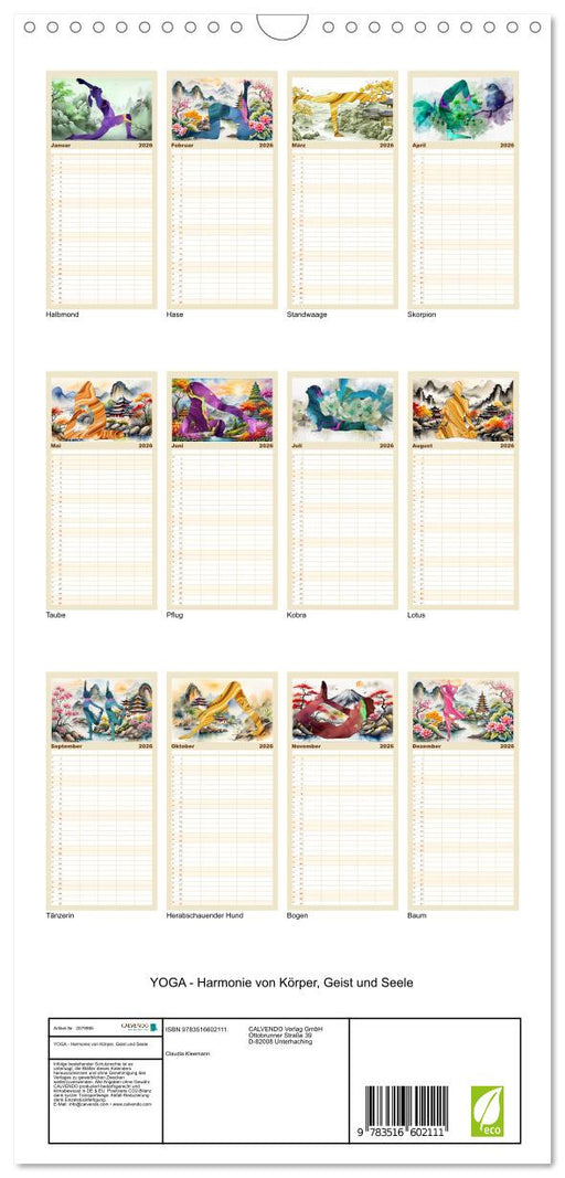 Afficher tous les détailsYOGA - Harmonie von Körper, Geist und Seele (CALVENDO Familienplaner 2026)
