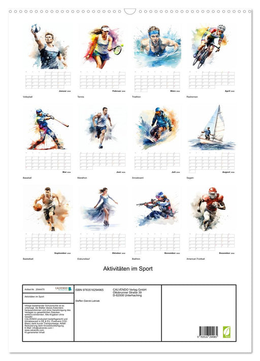 Afficher tous les détailsAktivitäten im Sport (CALVENDO Wandkalender 2026)