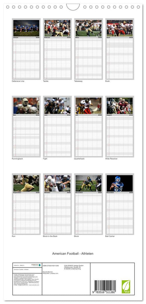Afficher tous les détailsAmerican Football - Athleten (CALVENDO Familienplaner 2026)