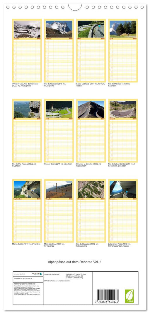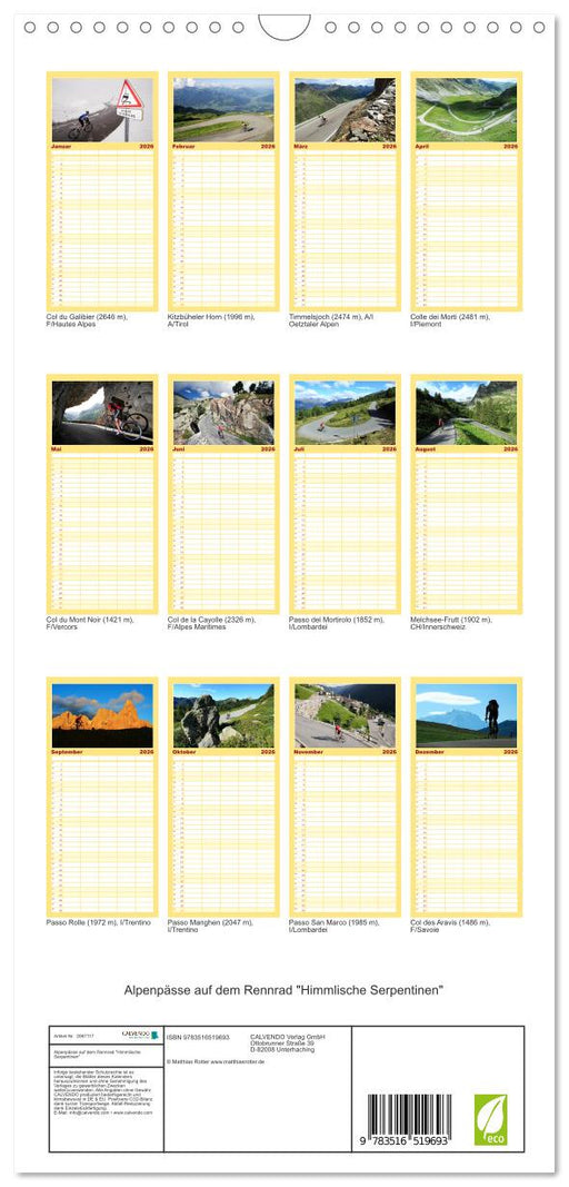 Afficher tous les détailsAlpenpässe auf dem Rennrad Vol. 1 (CALVENDO Familienplaner 2026)