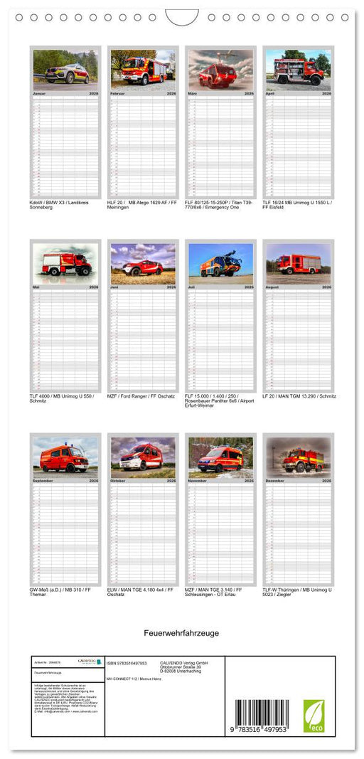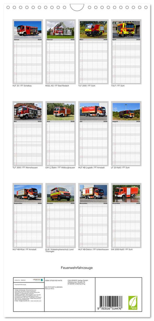 Afficher tous les détailsFeuerwehrfahrzeuge (CALVENDO Familienplaner 2026)