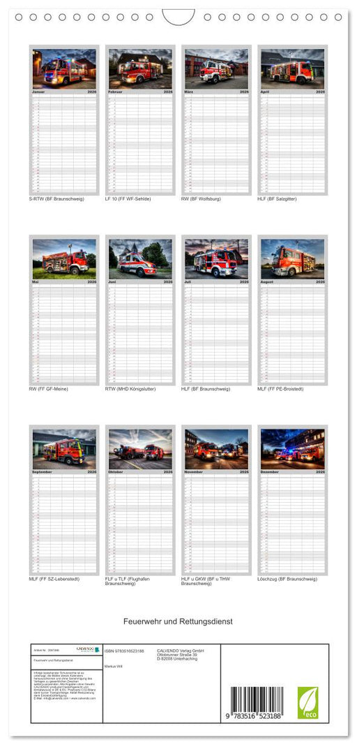Afficher tous les détailsFeuerwehr und Rettungsdienst (CALVENDO Premium Wandkalender 2026)
