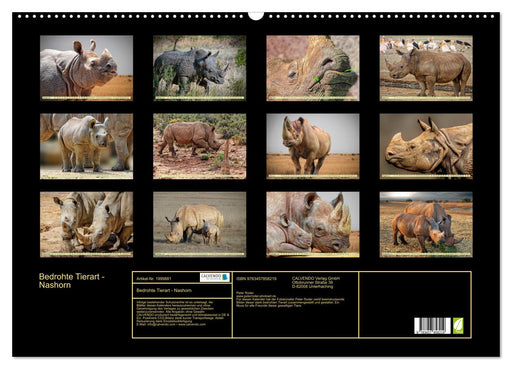 Afficher tous les détailsBedrohte Tierart - Nashorn (CALVENDO Wandkalender 2026)