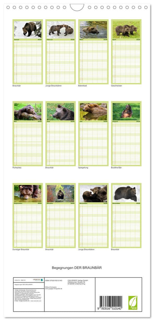 Afficher tous les détailsBegegnungen DER BRAUNBÄR (CALVENDO Familienplaner 2026)