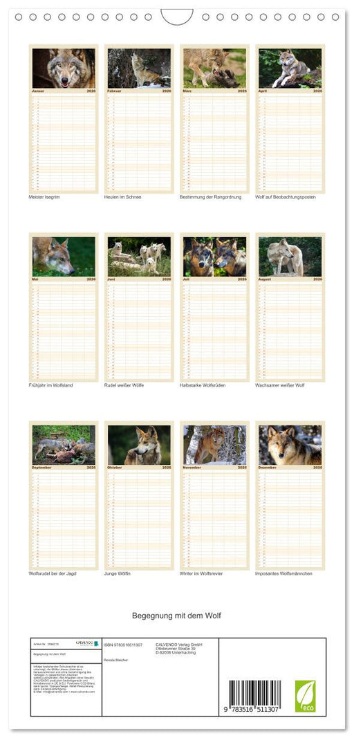 Afficher tous les détailsBegegnung mit dem Wolf (CALVENDO Familienplaner 2026)