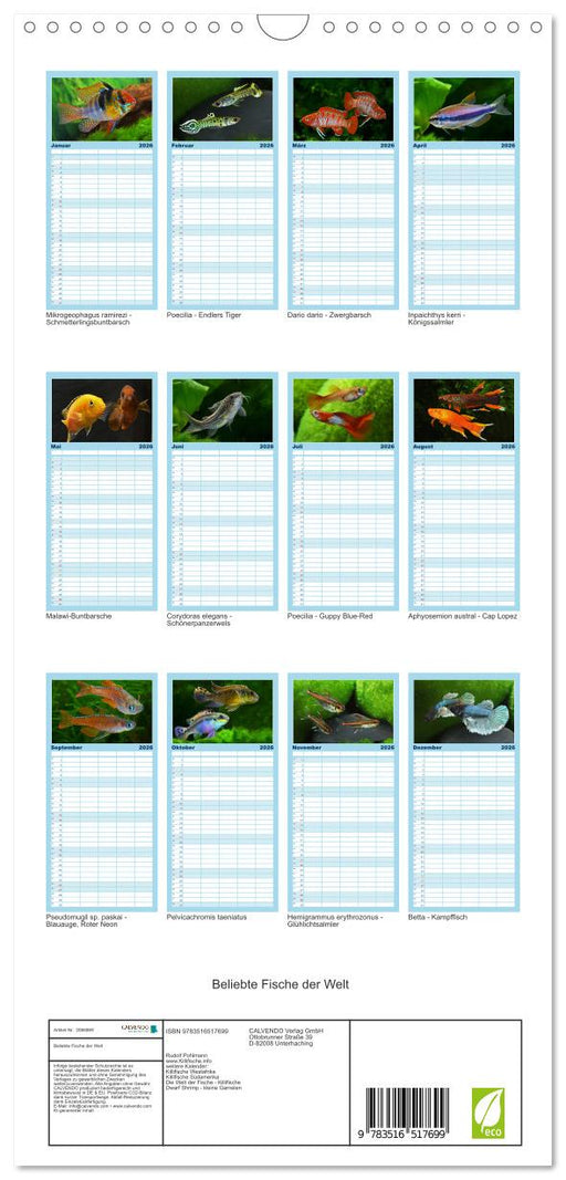 Afficher tous les détailsBeliebte Fische der Welt (CALVENDO Familienplaner 2026)