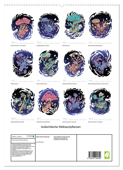 Mythische Pflanzenmonster im Weltraum. (Monatskalender, 14 Seiten) Entdecken Sie eine faszinierende Reise in den Kosmos, wo gezeichnete mythische ...