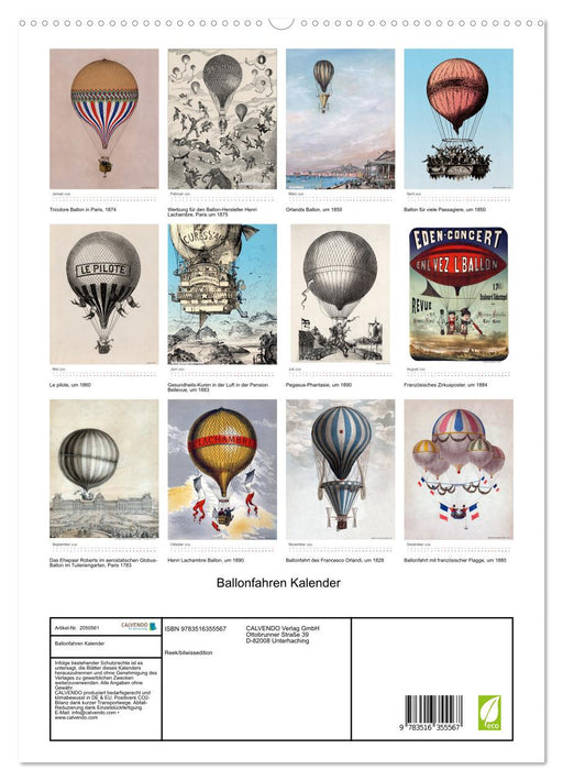 Afficher tous les détailsBallonfahren Kalender (CALVENDO Premium Wandkalender 2026)