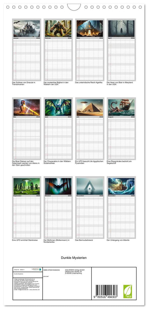 Afficher tous les détailsDunkle Mysterien (CALVENDO Familienplaner 2026)