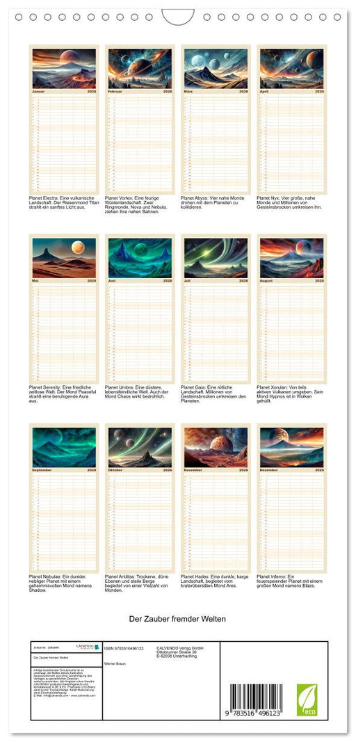 Afficher tous les détailsDer Zauber fremder Welten (CALVENDO Familienplaner 2026)