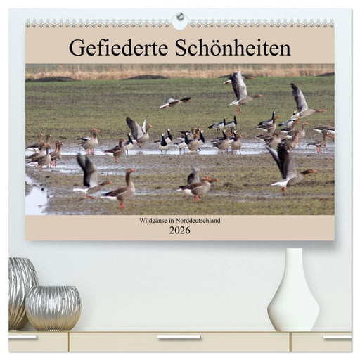 Afficher tous les détailsGefiederte Schönheiten - Wildgänse in Norddeutschland (CALVENDO Premium Wandkalender 2026)