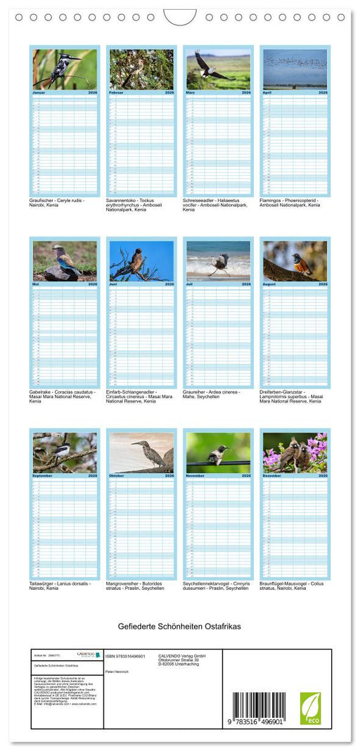 Afficher tous les détailsGefiederte Schönheiten Ostafrikas (CALVENDO Familienplaner 2026)