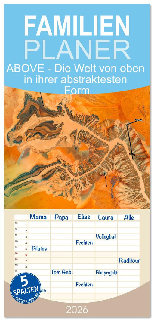 Afficher tous les détailsABOVE - Die Welt von oben in ihrer abstraktesten Form (CALVENDO Familienplaner 2026)