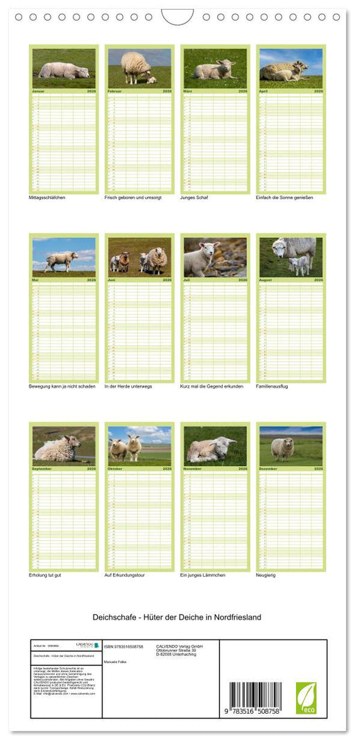 Afficher tous les détailsDeichschafe - Hüter der Deiche in Nordfriesland (CALVENDO Familienplaner 2026)