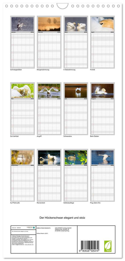 Afficher tous les détailsDer Höckerschwan elegant und stolz (CALVENDO Familienplaner 2026)
