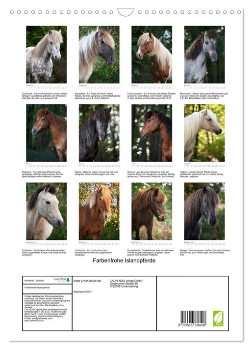 Künstlerische Portraits von 12 wunderschönen Isländern (Monatskalender, 14 Seiten) Bekannt für seine Farbenvielfalt erfreut sich das Islandpferd a...