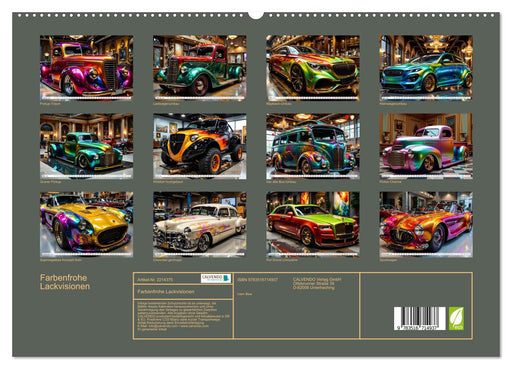 Zwölf Visionen extremer Fahrzeugkunst (Monatskalender, 14 Seiten) Spektakuläre Kunst auf vier Rädern: In „Farbenfrohe Lackvisionen“ verschmelzen r...