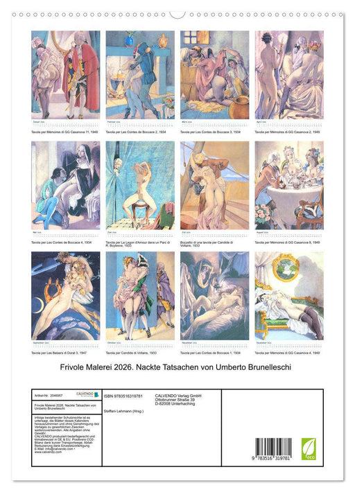 Afficher tous les détailsFrivole Malerei 2026. Nackte Tatsachen von Umberto Brunelleschi (CALVENDO Wandkalender 2026)