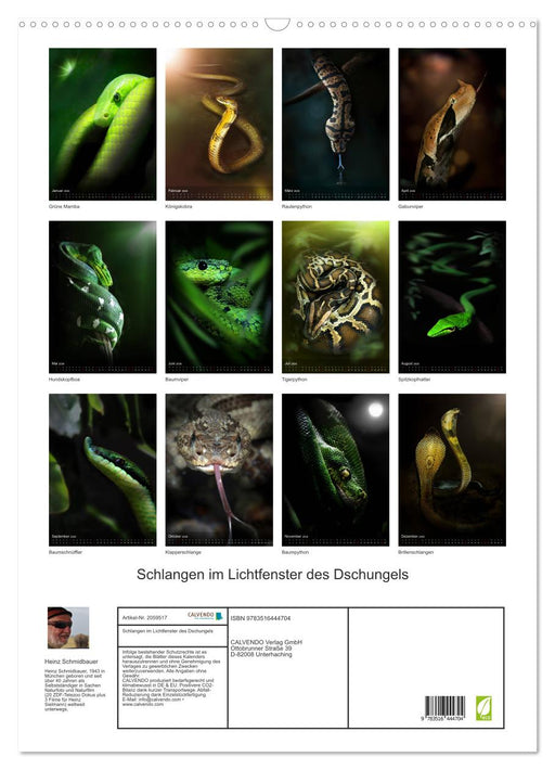 Afficher tous les détailsSchlangen im Lichtfenster des Dschungels (CALVENDO Wandkalender 2026)