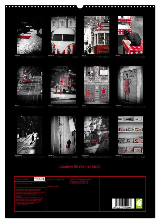 In den Farben schwarz-weiß-rot entstanden wunderschöne Impressionen in Lissabon. (Monatskalender, 14 Seiten) Dieser, sowie 149 weitere Kalender wu...