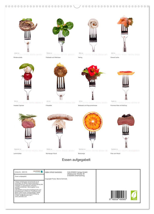 Leckeres Essen auf einer Gabel (Monatskalender, 14 Seiten) Essen und Lebensmittel in Nahaufnahmen auf einer Gabel präsentiert. Die Redaktion hat d...