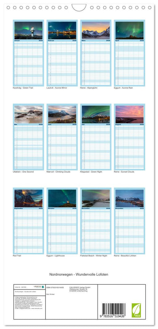 Nordnorwegen - Wundervolle Lofoten (CALVENDO Familienplaner 2026)