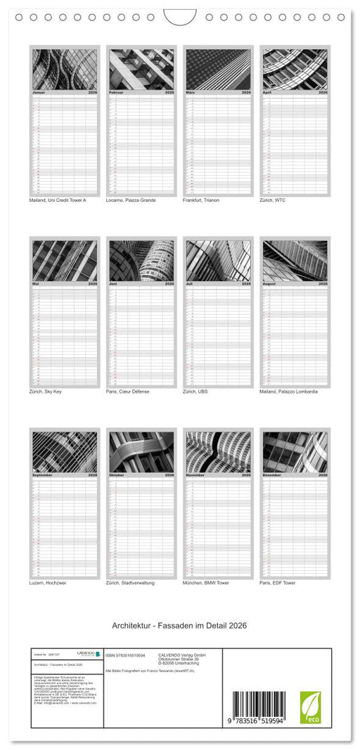 Afficher tous les détailsArchitektur - Fassaden im Detail 2026 (CALVENDO Familienplaner 2026)