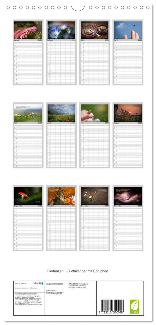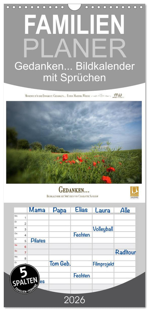 Afficher tous les détailsGedanken... Bildkalender mit Sprüchen (CALVENDO Familienplaner 2026)