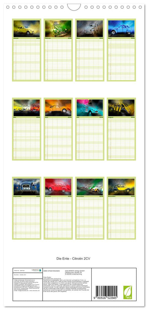 Afficher tous les détailsDie Ente - Citroën 2CV (CALVENDO Familienplaner 2026)
